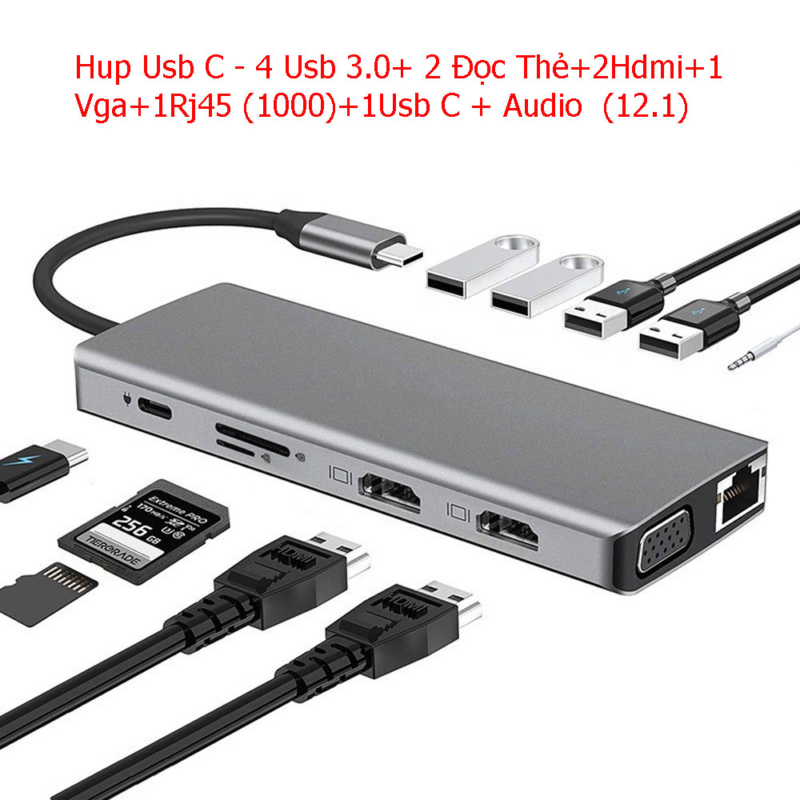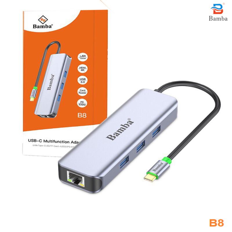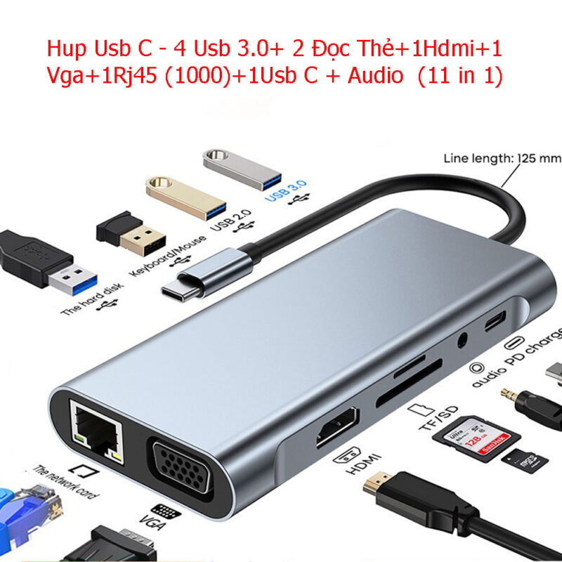 BẢO HÀNH: 12 THÁNG Bảo hành 1 đổi 1 -Bộ chia cổng Usb-C ra 3 cổng usb 3.0 + 1 cổng Usb-C (PD) + Thẻ nhớ SD + Thẻ nhớ Micro SD + Hdmi + Lan