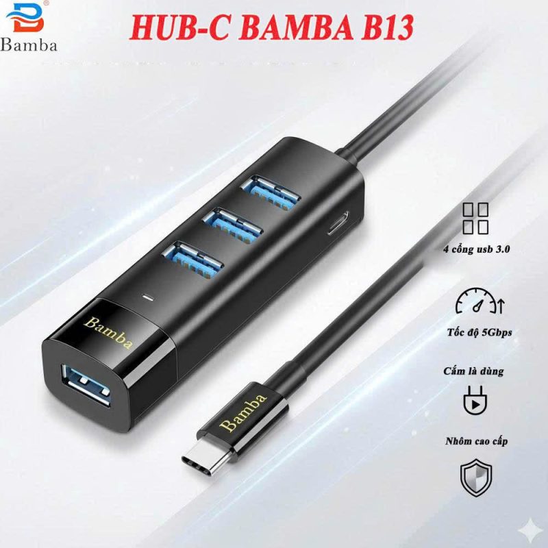 BẢO HÀNH: 12 THÁNG Bảo hành 1 đổi 1 – Hub chia cổng Usb-C ra 4 cổng Usb 3.0 – Sử dụng rộng rãi trên thị trường , tương thích với các loại sản phẩm như PC , Laptop , Macbook , điện thoại có cổng C – Cắm là nhận , không cần cài driver