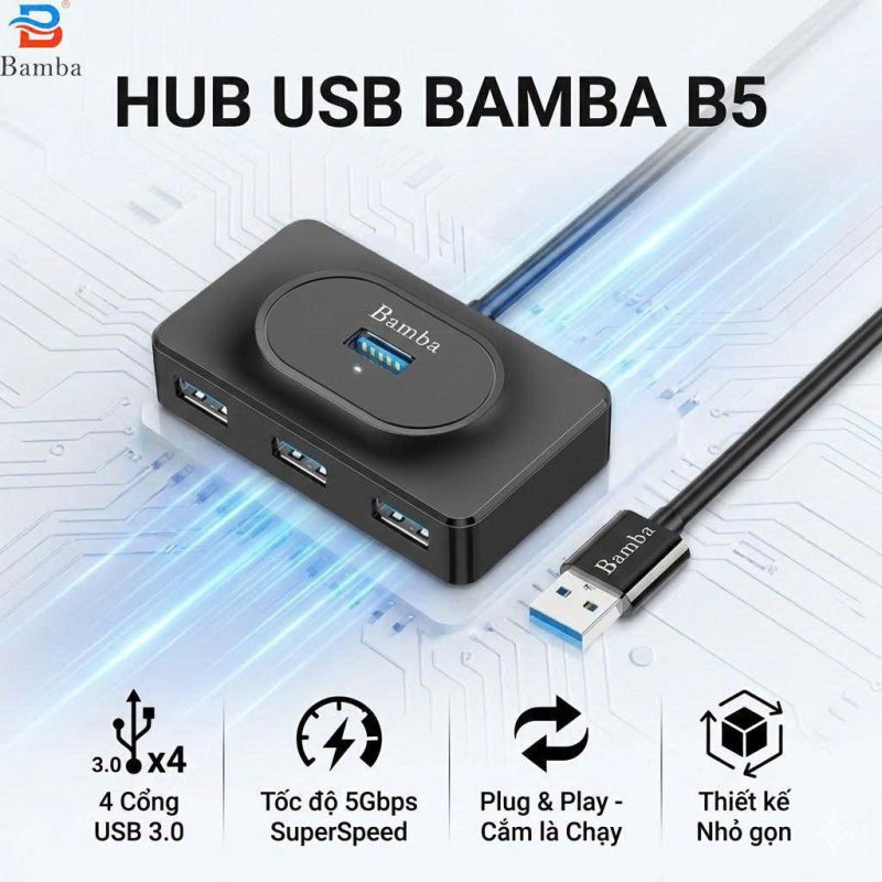 BẢO HÀNH: 12 THÁNG Bảo hành 1 đổi 1 – Hub chia cổng Usb 3.0 ra 4 cổng Usb 3.0 – Sử dụng rộng rãi trên thị trường , tương thích với các loại sản phẩm như PC , Laptop , Macbook , điện thoại có cổng Usb – Cắm là nhận , không cần cài driver .