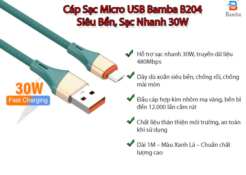 - Cáp sạc Usb-A – Micro Usb sử dụng bộ chip điều khiển vi mạch chất lượng cao , thiết kế nhỏ gọn , là sự lựa chọn hoàn hảo khi dùng ở nhà và di chuyển bên ngoài . Sản phẩm thích hợp hầu hết các điện thoại có cổng sạc Micro Usb như Samsung , Oppo ……
