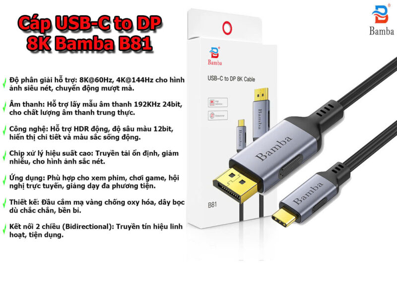 Cable USB C – Display Port Bamba B81 1.8M