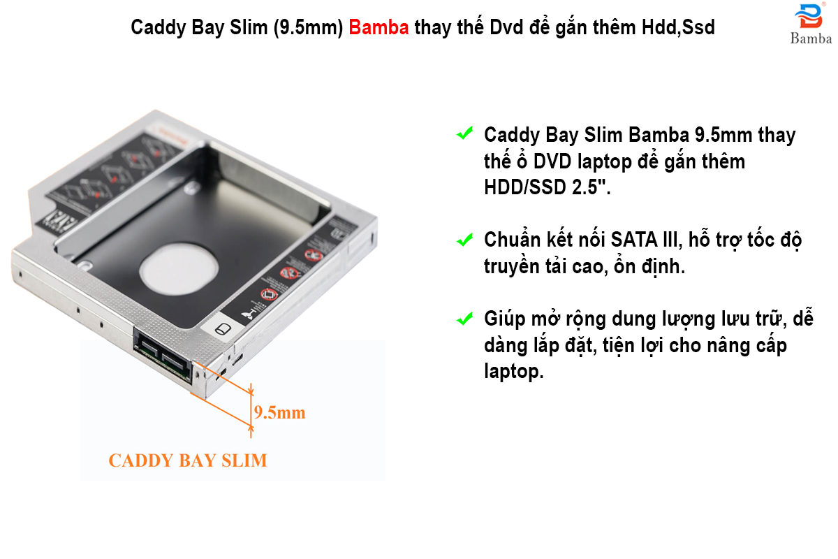 - Loại caddy bay dùng cho máy laptop mỏng