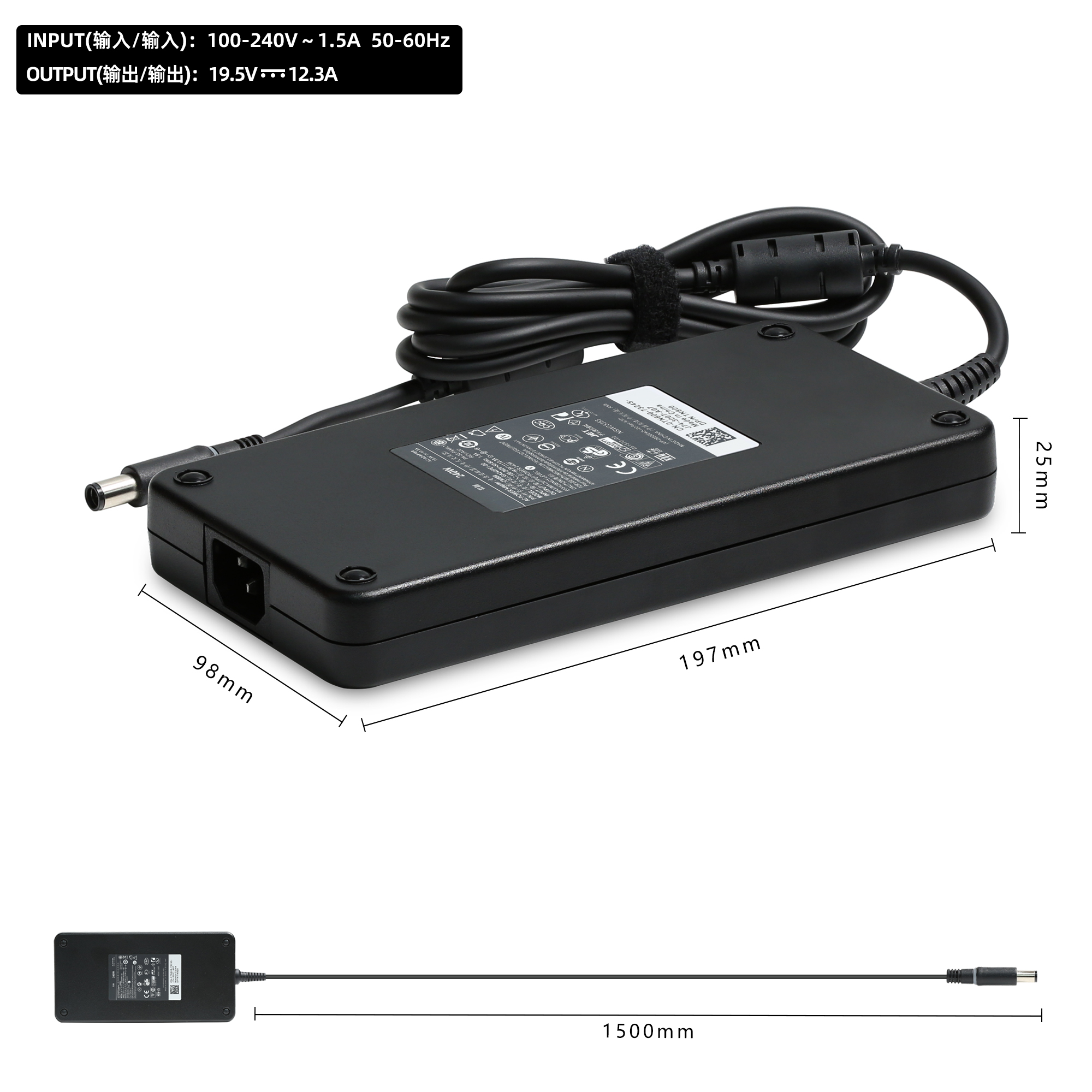 - Output : 19.5V – 12.3A