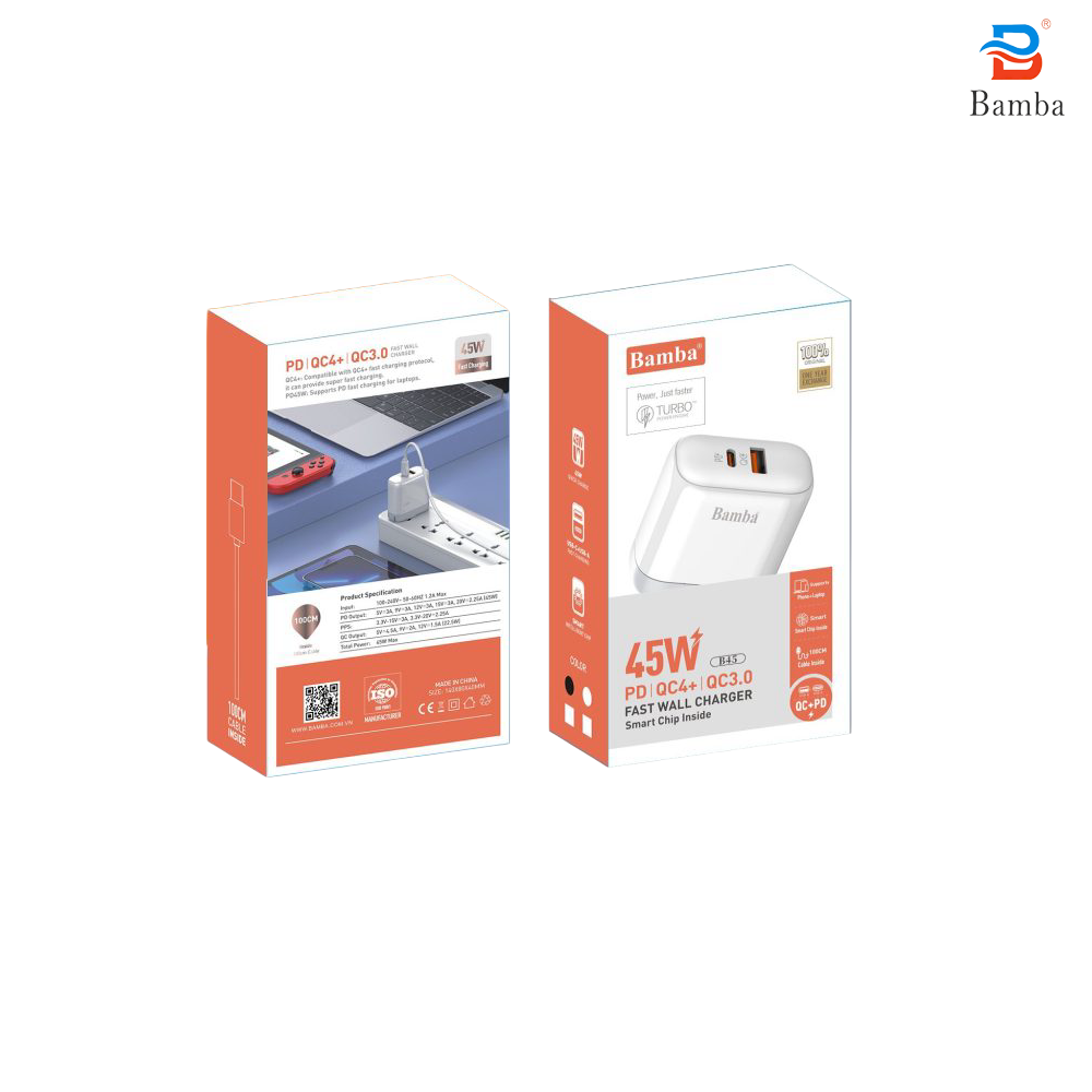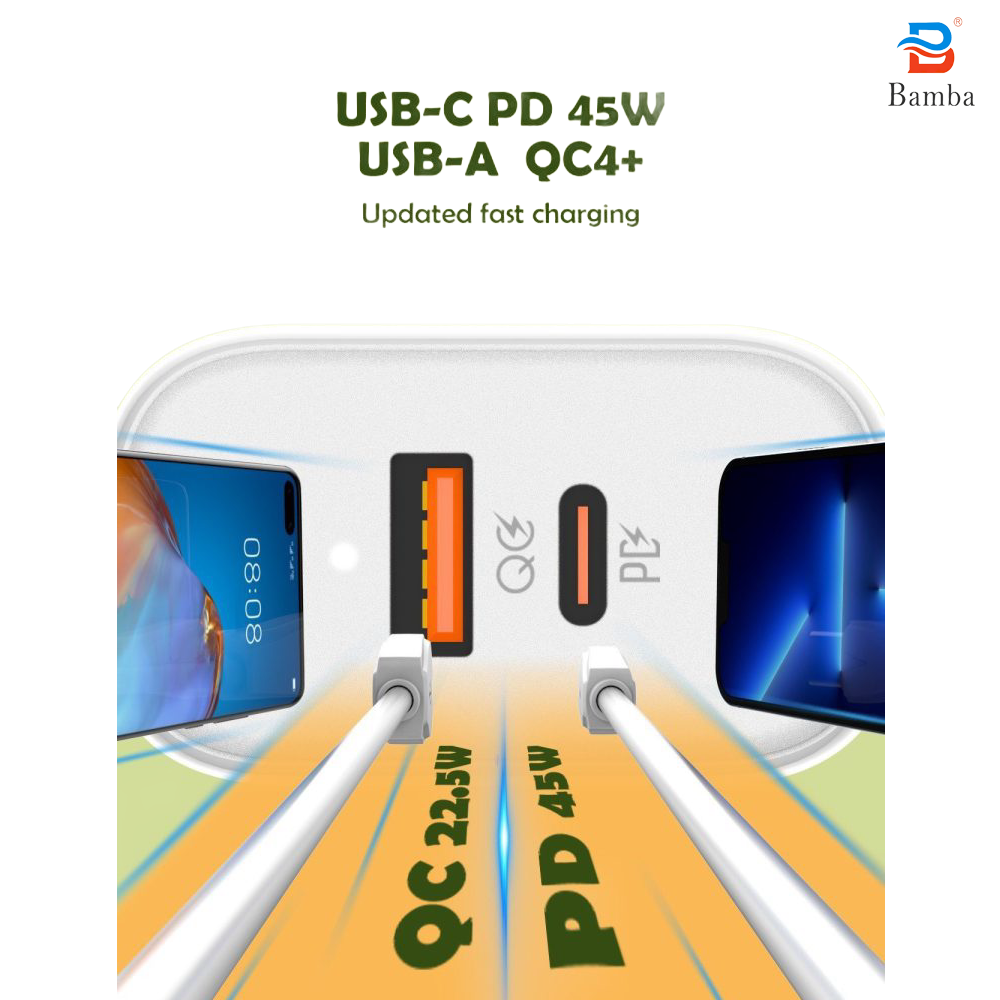 – Củ Sạc nhanh Wall Charger 45W Usb+ TypeC ( PD + QC4.0 + QC3.0 )