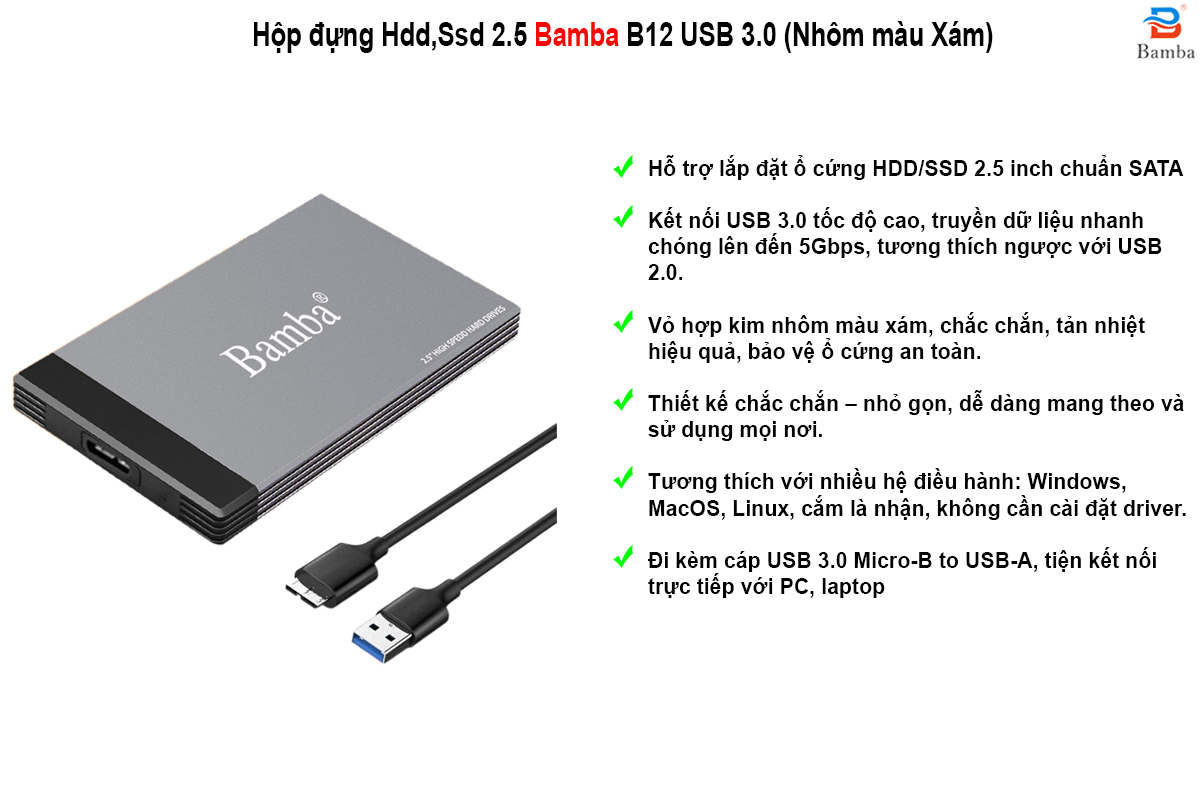 - Bộ sản phẩm gồm : Box SATA 2,5″ x Cáp USB.