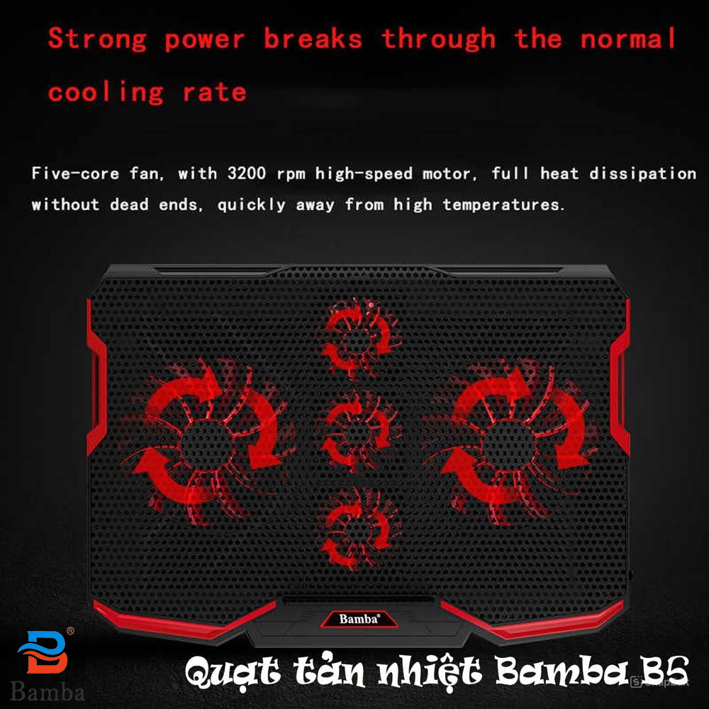 - Đế Tản Nhiệt Laptop BAMBA B5 có khả năng tương thích với các loại máy tính xách tay có kích thước màn hình tối đa 17” mang đến cho bạn nhiều sự lựa chọn cho nhu cầu và mục đích sử dụng