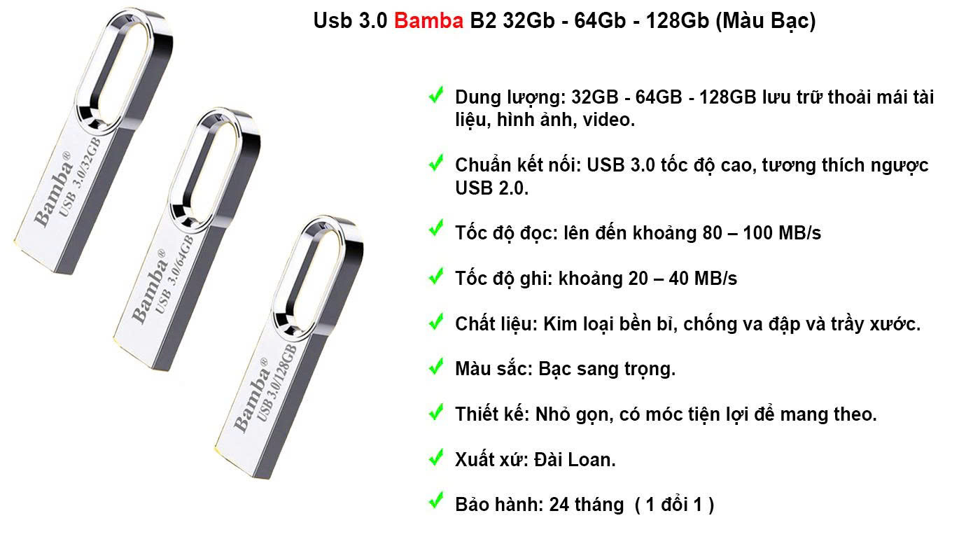 Usb 3.0 Bamba B2 128Gb (Màu Bạc)